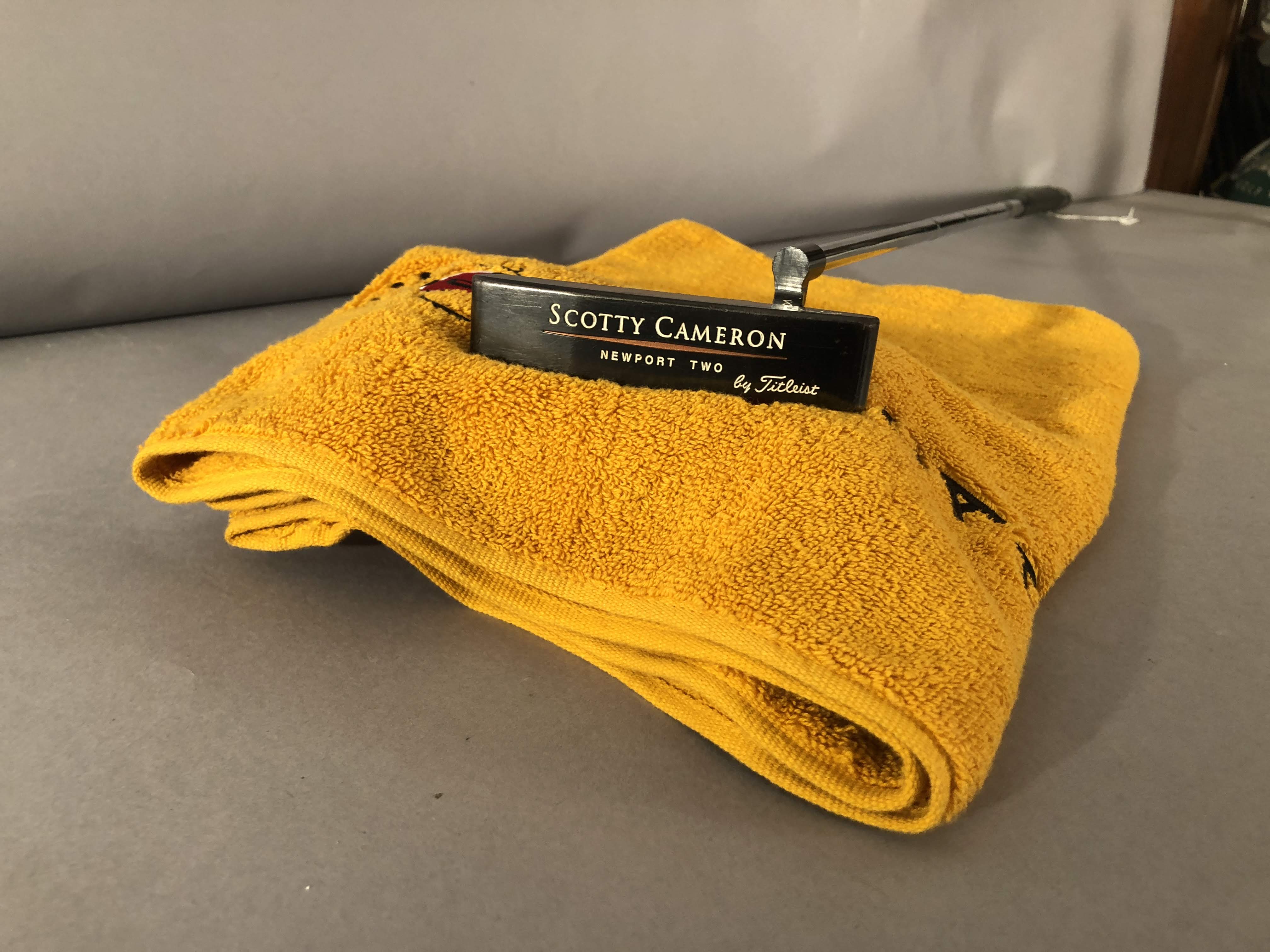 Cat # SC Putter 002. Offering a used Scotty Cameron Newport Two TEI3 putter 34″. Putter has a teryllium insert and Titleist pistol grip all in original condition. Putter is in good condition with minor bumps from use. I rate this putter 7 of 10. Headcover as shown included.
